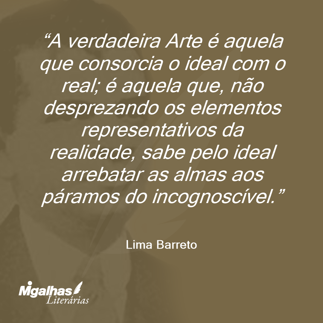 A verdadeira Arte é aquela que consorcia o ideal com o real; é aquela que, não desprezando os elementos representativos da realidade, sabe pelo ideal arrebatar as almas aos páramos do incognoscível.