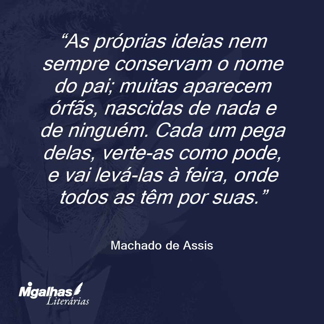 As próprias ideias nem sempre conservam o nome do pai; muitas aparecem órfãs, nascidas de nada e de ninguém. Cada um pega delas, verte-as como pode, e vai levá-las à feira, onde todos as têm por suas.