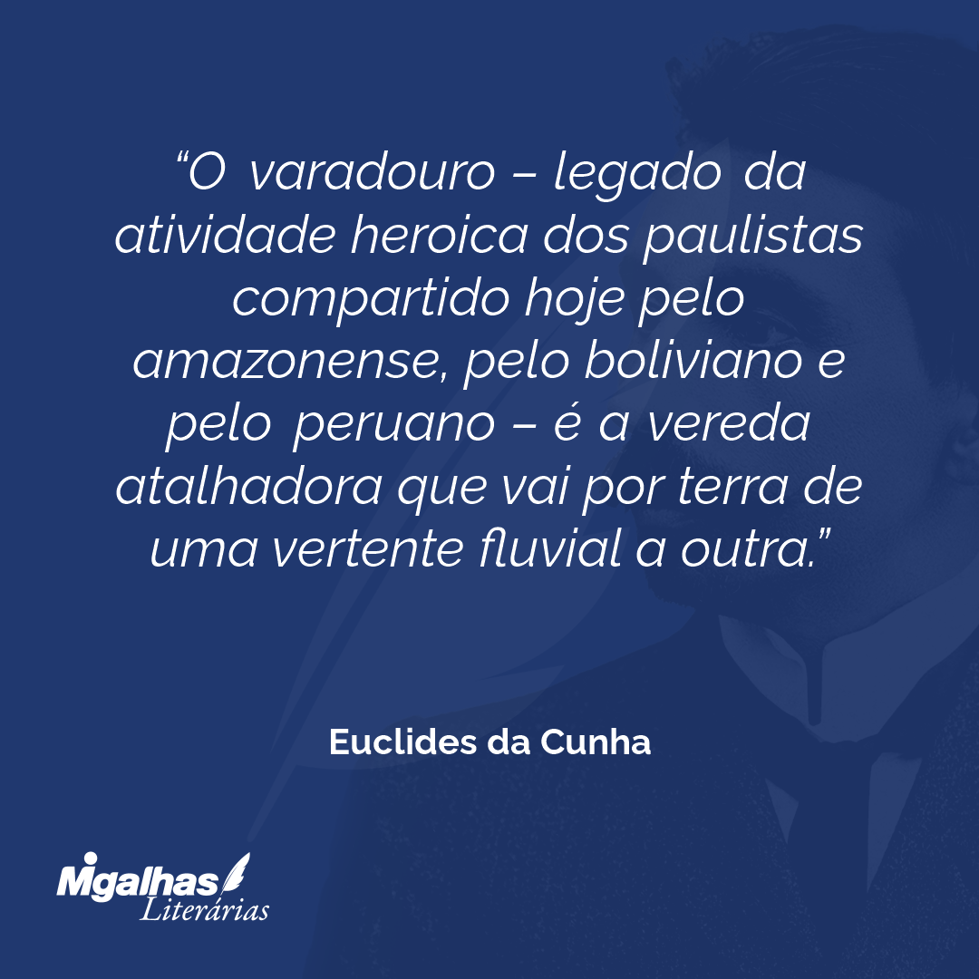 Para vencermos a terra houvemos que formar até o homem capaz de a combater – criando-se à imagem dela, com as suas rudezas e as suas energias revoltas – por maneira a talhar-se no tipo mestiço, e inteiramente novo, do bandeirante, a figura excepcional do homem que se fez bárbaro para estradar o deserto, abrindo as primeiras trilhas ao progresso.