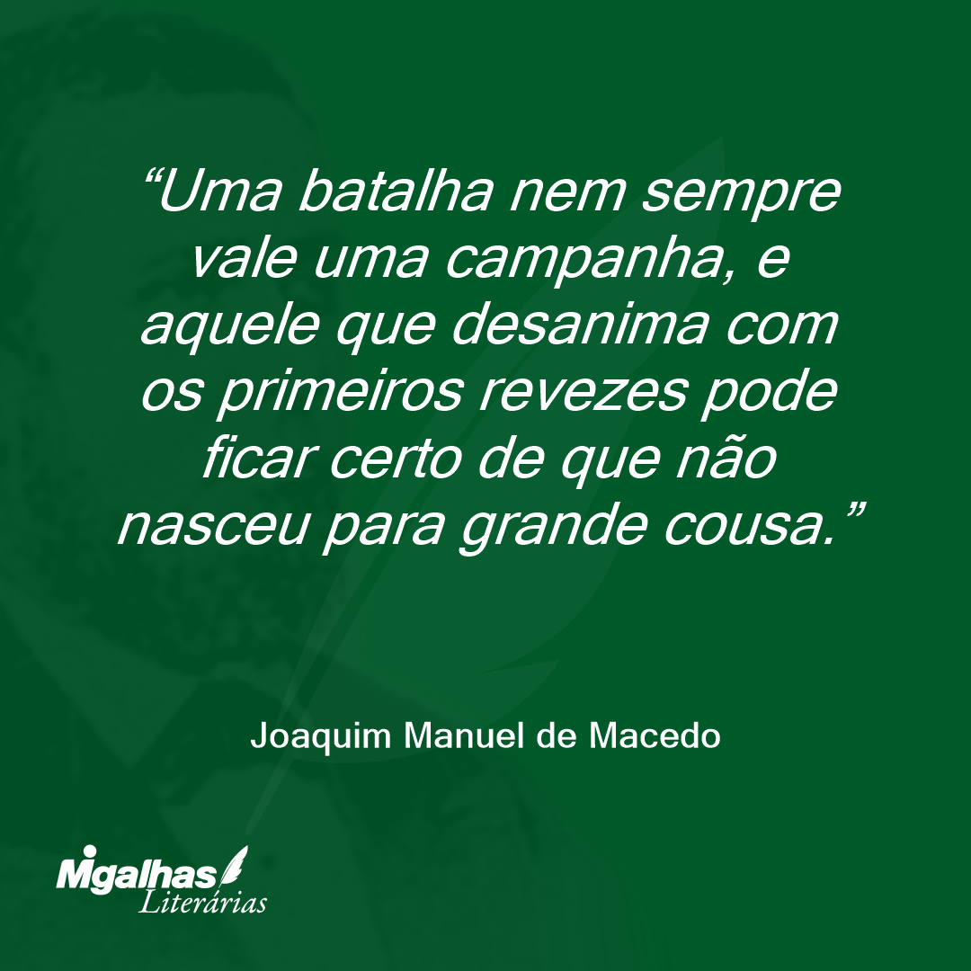 Uma batalha nem sempre vale uma campanha, e aquele que desanima com os primeiros revezes pode ficar certo de que não nasceu para grande cousa.