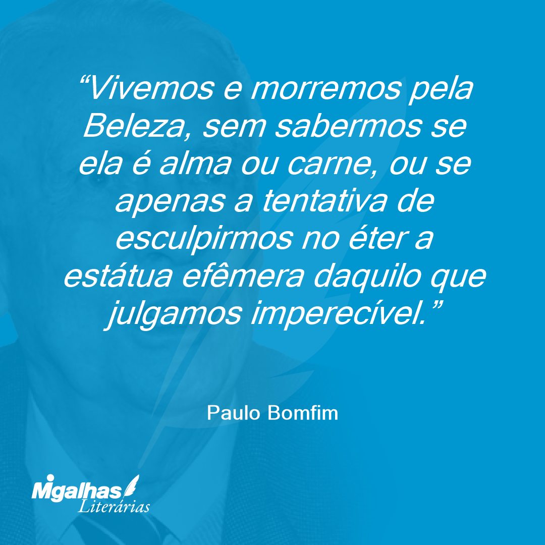 Vivemos e morremos pela Beleza, sem sabermos se ela é alma ou carne, ou se apenas a tentativa de esculpirmos no éter a estátua efêmera daquilo que julgamos imperecível.