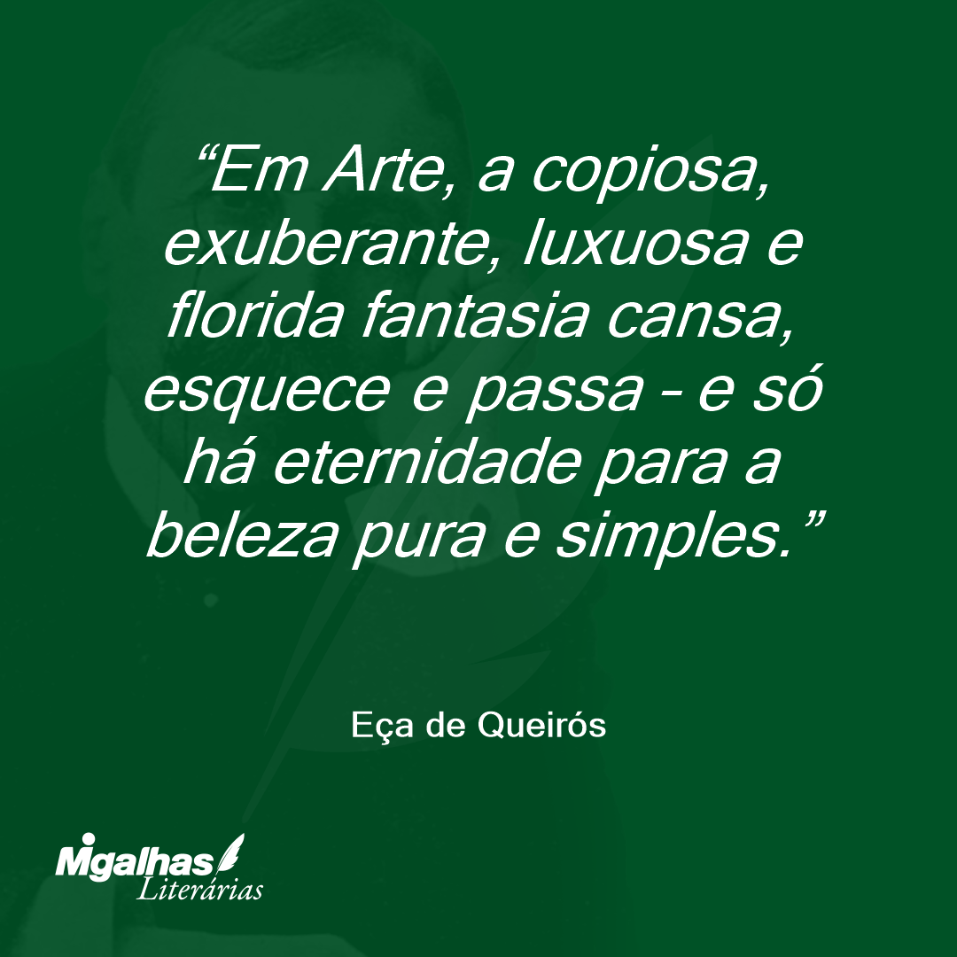 Em Arte, a copiosa, exuberante, luxuosa e florida fantasia cansa, esquece e passa – e só há eternidade para a beleza pura e simples.
