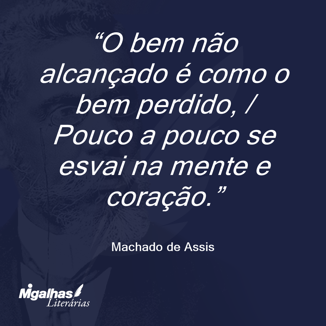 O bem não alcançado é como o bem perdido, / Pouco a pouco se esvai na mente e coração.