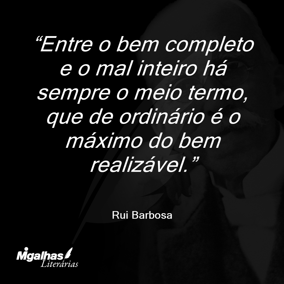 Entre o bem completo e o mal inteiro há sempre o meio termo, que de ordinário é o máximo do bem realizável.