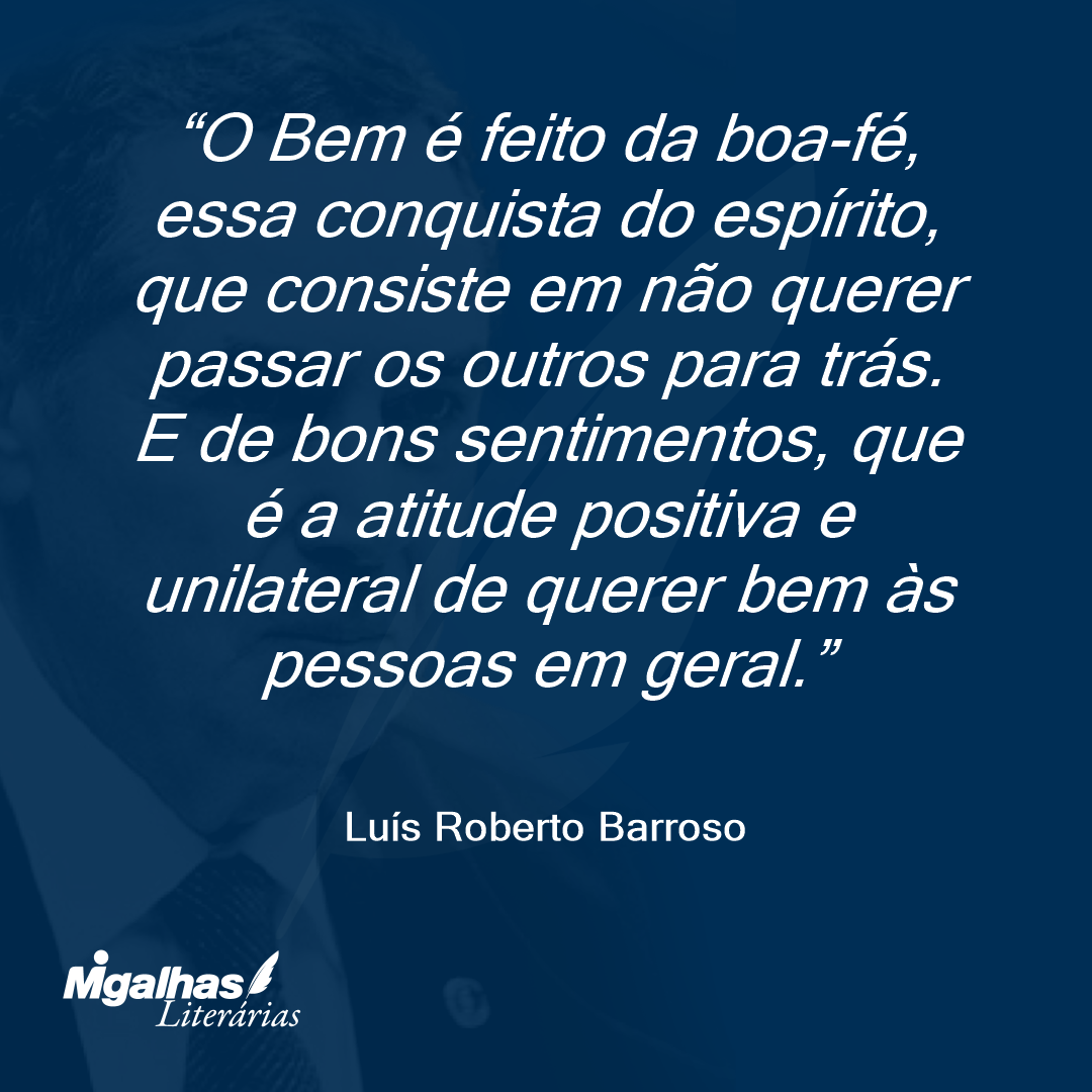 O Bem é feito da boa-fé, essa conquista do espírito, que consiste em não querer passar os outros para trás. E de bons sentimentos, que é a atitude positiva e unilateral de querer bem às pessoas em geral.