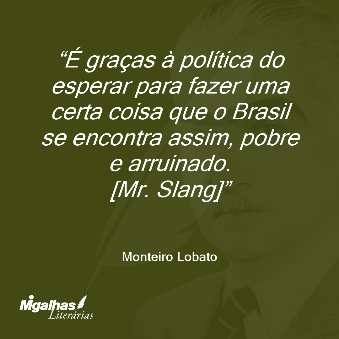 Monteiro Lobato | Trecho retirado do livro "Mr. Slang e o Brasil e Problema vital. Obras Completas de Monteiro Lobato, Vol. 8. São Paulo: Editora Brasiliense Ltda., 1955."