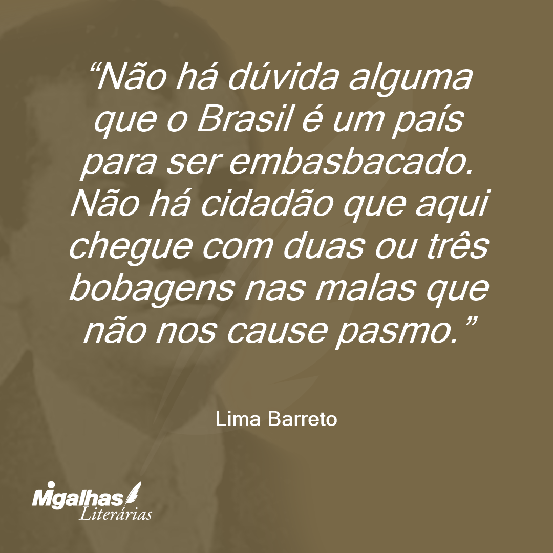 Não há dúvida alguma que o Brasil é um país para ser embasbacado. Não há cidadão que aqui chegue com duas ou três bobagens nas malas que não nos cause pasmo.