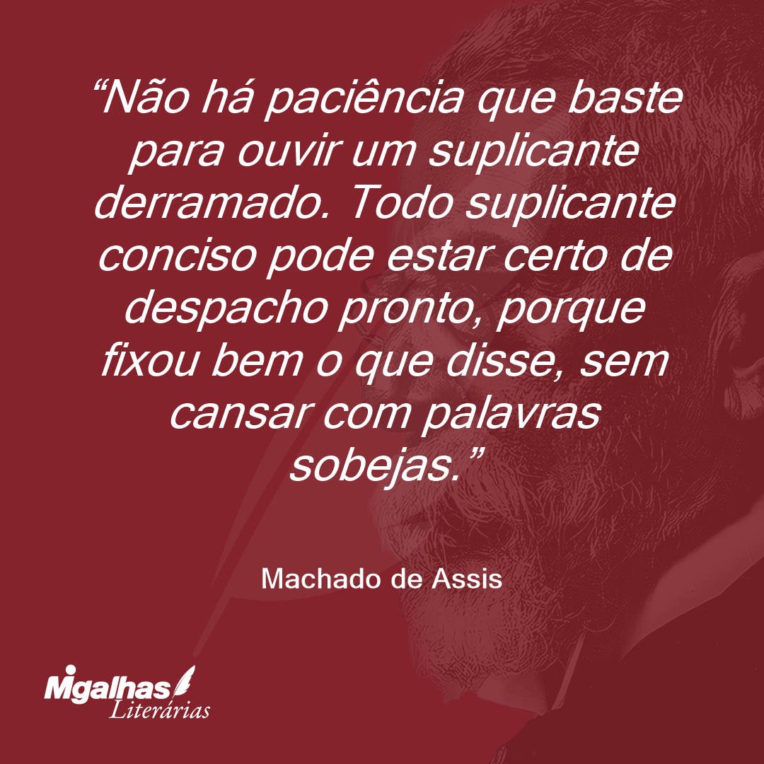 Não há paciência que baste para ouvir um suplicante derramado. Todo suplicante conciso pode estar certo de despacho pronto, porque fixou bem o que disse, sem cansar com palavras sobejas.