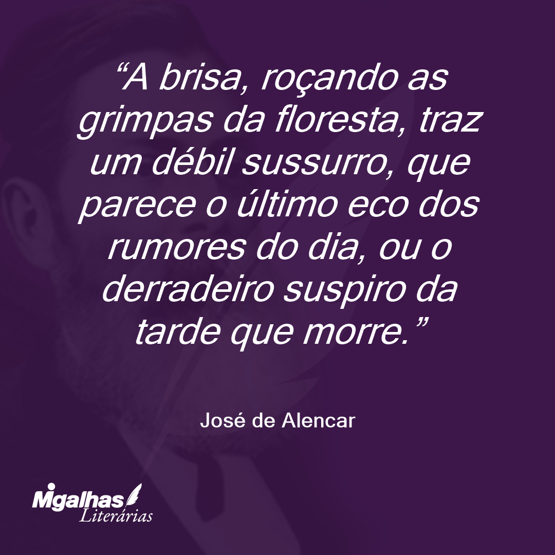 A brisa, roçando as grimpas da floresta, traz um débil sussurro, que parece o último eco dos rumores do dia, ou o derradeiro suspiro da tarde que morre.