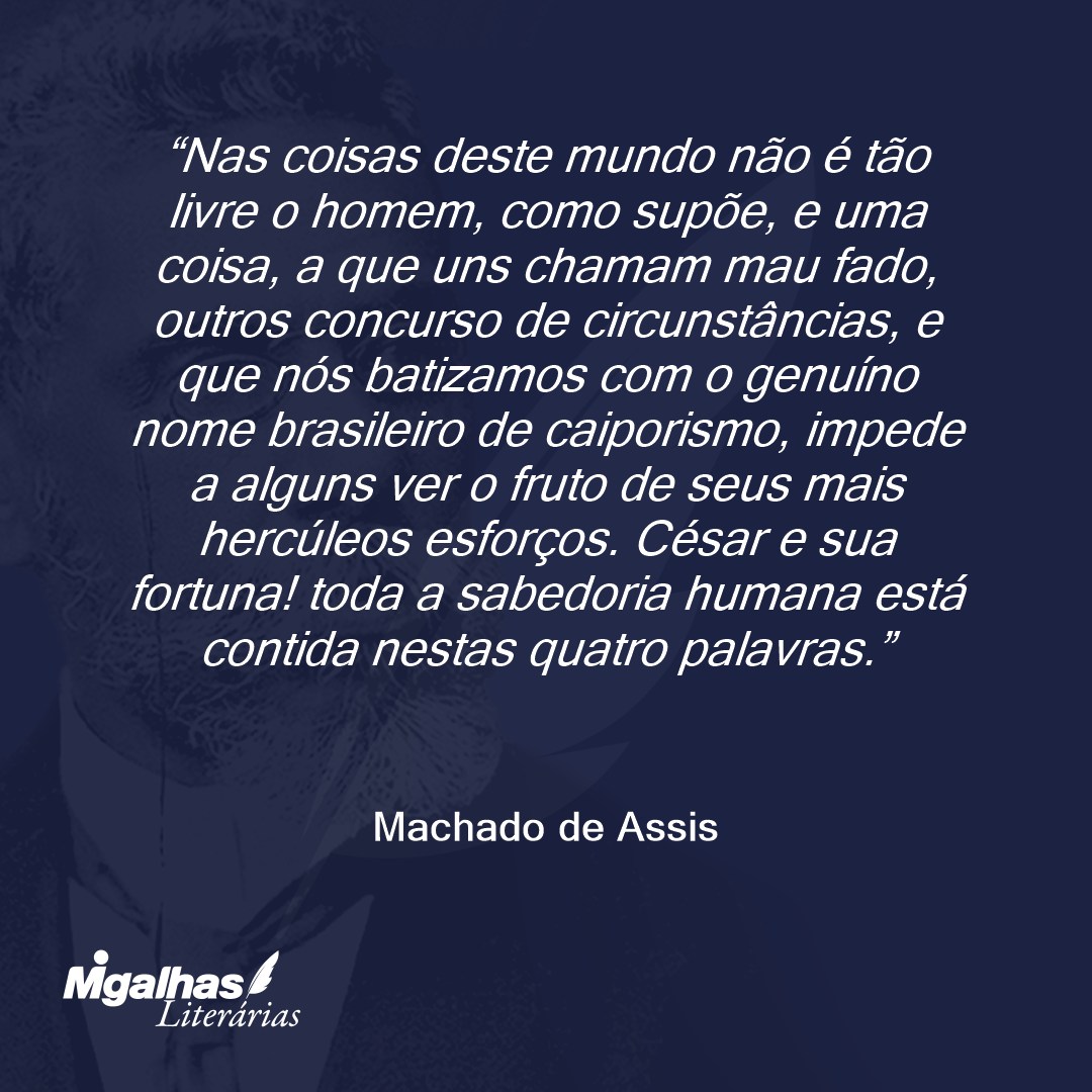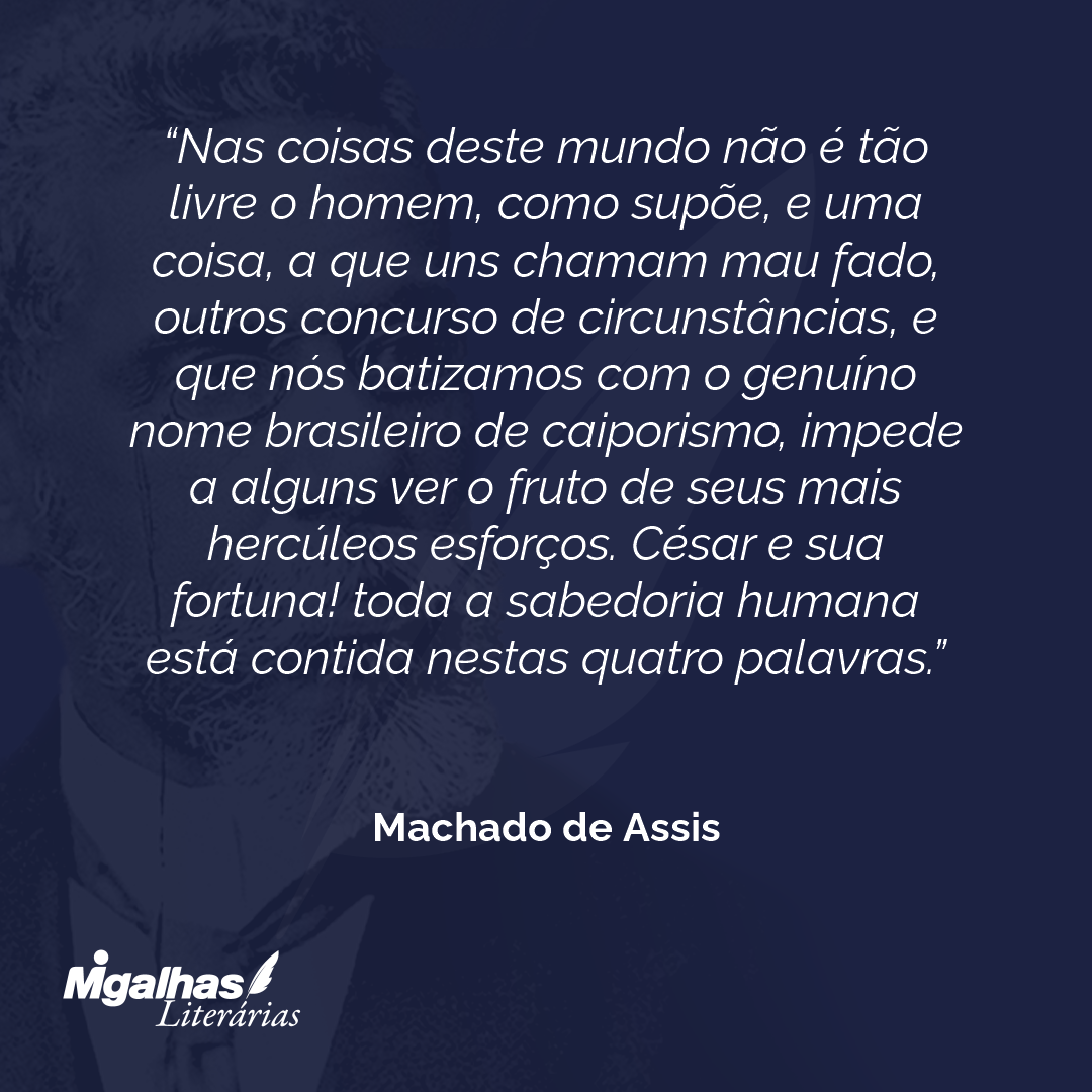 Nas coisas deste mundo não é tão livre o homem, como supõe, e uma coisa, a que uns chamam mau fado, outros concurso de circunstâncias, e que nós batizamos com o genuíno nome brasileiro de caiporismo, impede a alguns ver o fruto de seus mais hercúleos esforços. César e sua fortuna! toda a sabedoria humana está contida nestas quatro palavras.