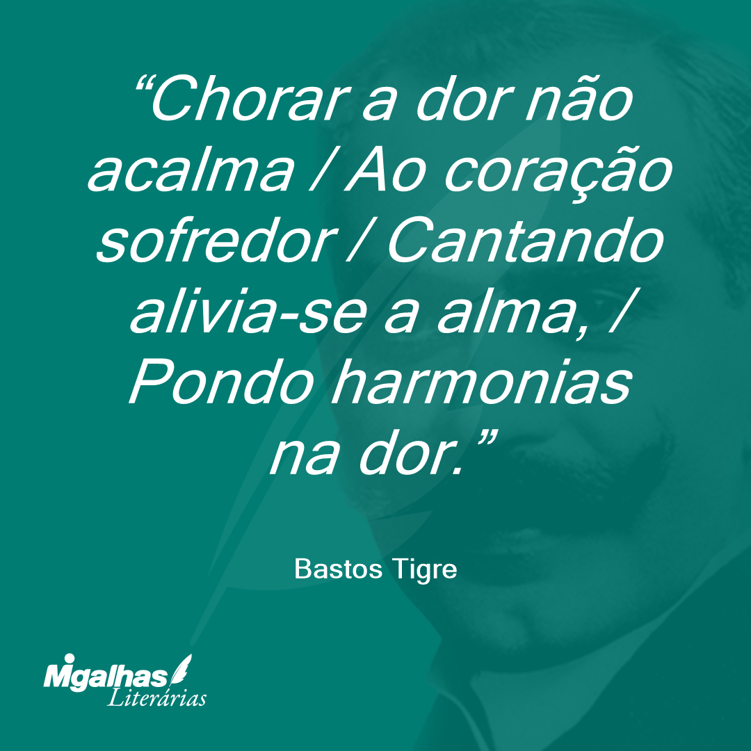 Chorar a dor não acalma / Ao coração sofredor / Cantando alivia-se a alma, / Pondo harmonias na dor.