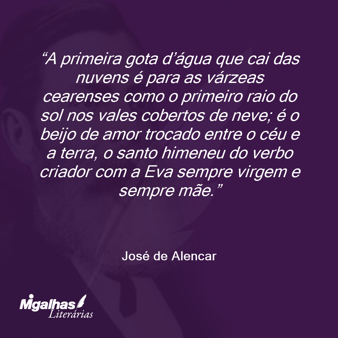A primeira gota d’água que cai das nuvens é para as várzeas cearenses como o primeiro raio do sol nos vales cobertos de neve; é o beijo de amor trocado entre o céu e a terra, o santo himeneu do verbo criador com a Eva sempre virgem e sempre mãe.