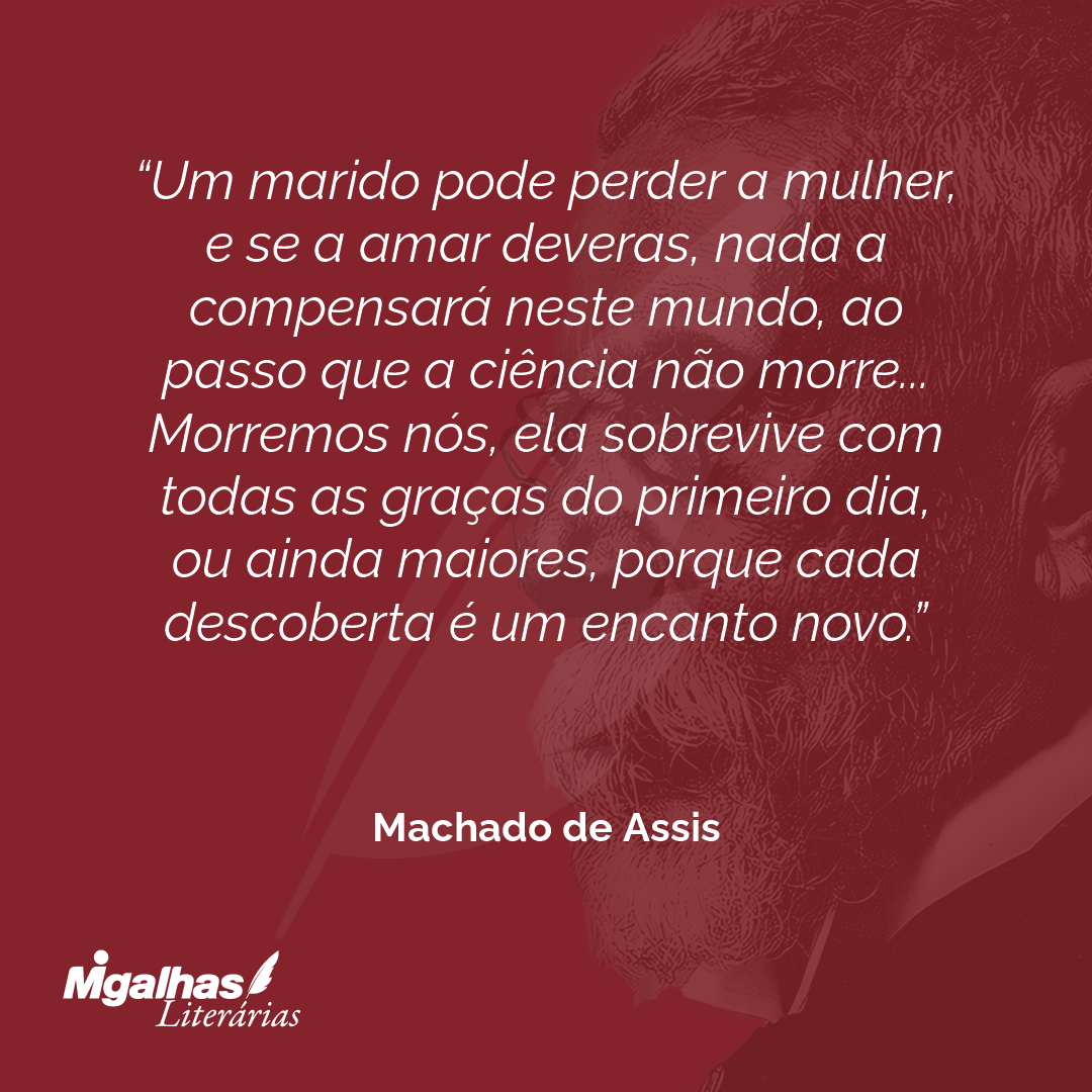 Um marido pode perder a mulher, e se a amar deveras, nada a compensará neste mundo, ao passo que a ciência não morre... Morremos nós, ela sobrevive com todas as graças do primeiro dia, ou ainda maiores, porque cada descoberta é um encanto novo.