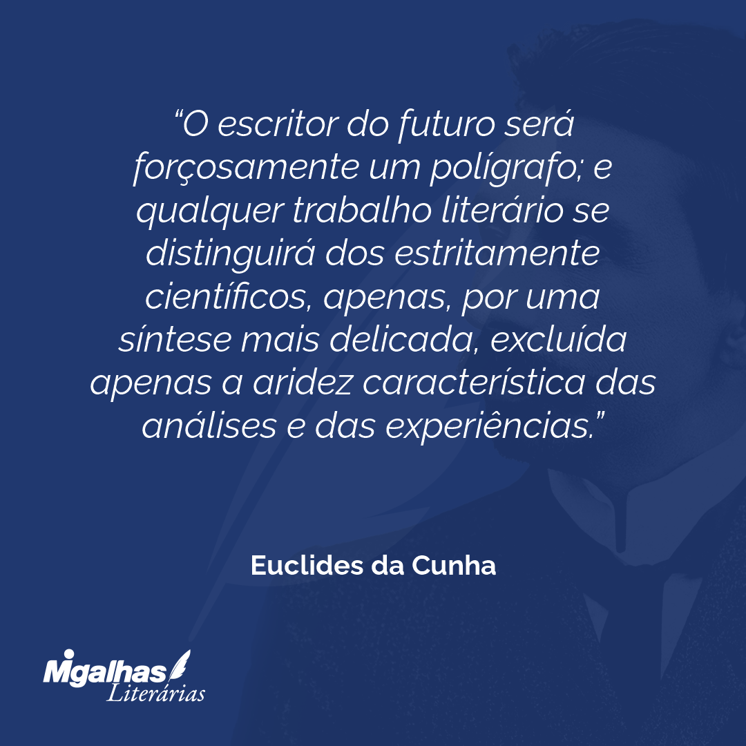 O escritor do futuro será forçosamente um polígrafo; e qualquer trabalho literário se distinguirá dos estritamente científicos, apenas, por uma síntese mais delicada, excluída apenas a aridez característica das análises e das experiências.