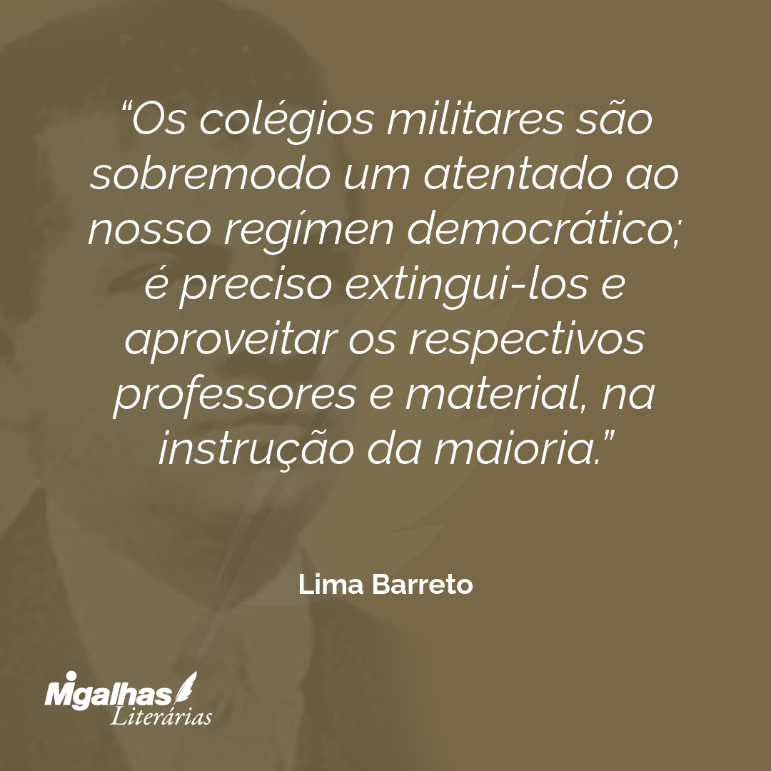 Os colégios militares são sobremodo um atentado ao nosso regímen democrático; é preciso extingui-los e aproveitar os respectivos professores e material, na instrução da maioria.