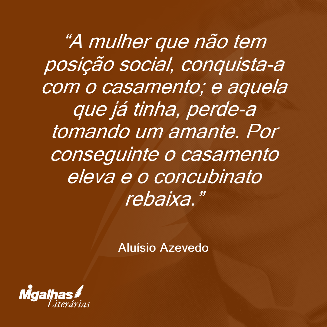 A mulher que não tem posição social, conquista-a com o casamento; e aquela que já tinha, perde-a tomando um amante. Por conseguinte o casamento eleva e o concubinato rebaixa.