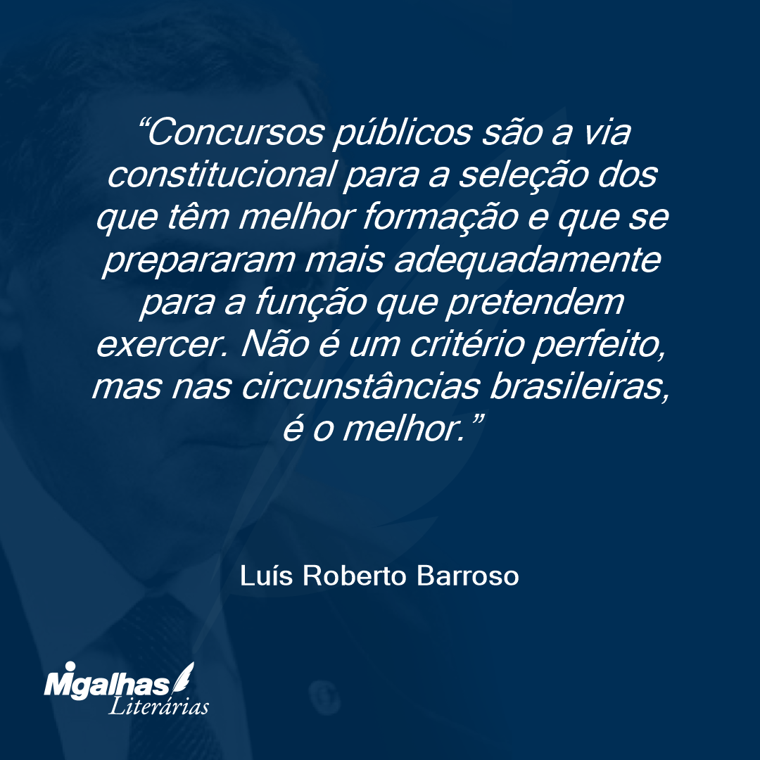 Concursos públicos são a via constitucional para a seleção dos que têm melhor formação e que se prepararam mais adequadamente para a função que pretendem exercer. Não é um critério perfeito, mas nas circunstâncias brasileiras, é o melhor.