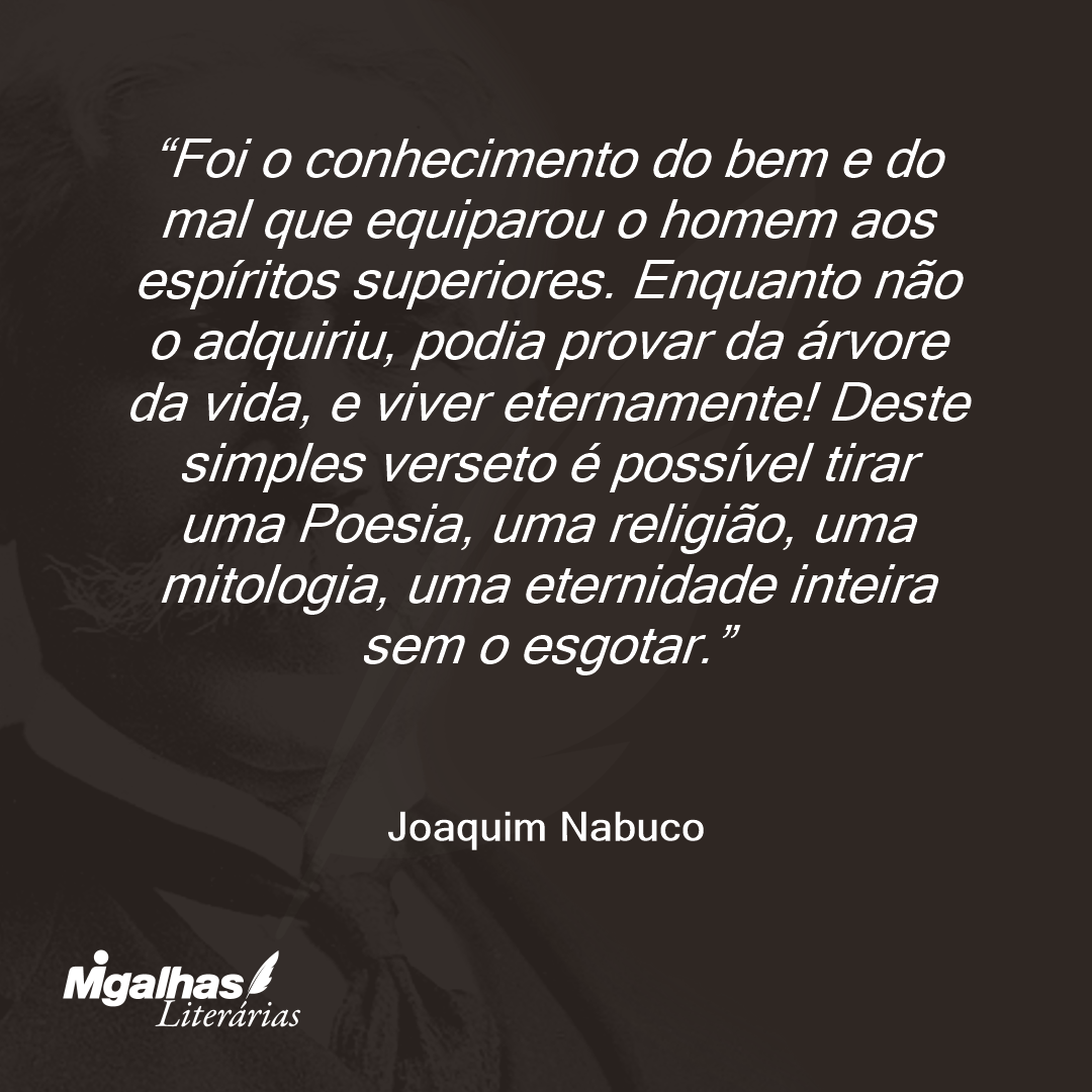 Foi o conhecimento do bem e do mal que equiparou o homem aos espíritos superiores. Enquanto não o adquiriu, podia provar da árvore da vida, e viver eternamente! Deste simples verseto é possível tirar uma Poesia, uma religião, uma mitologia, uma eternidade inteira sem o esgotar.
