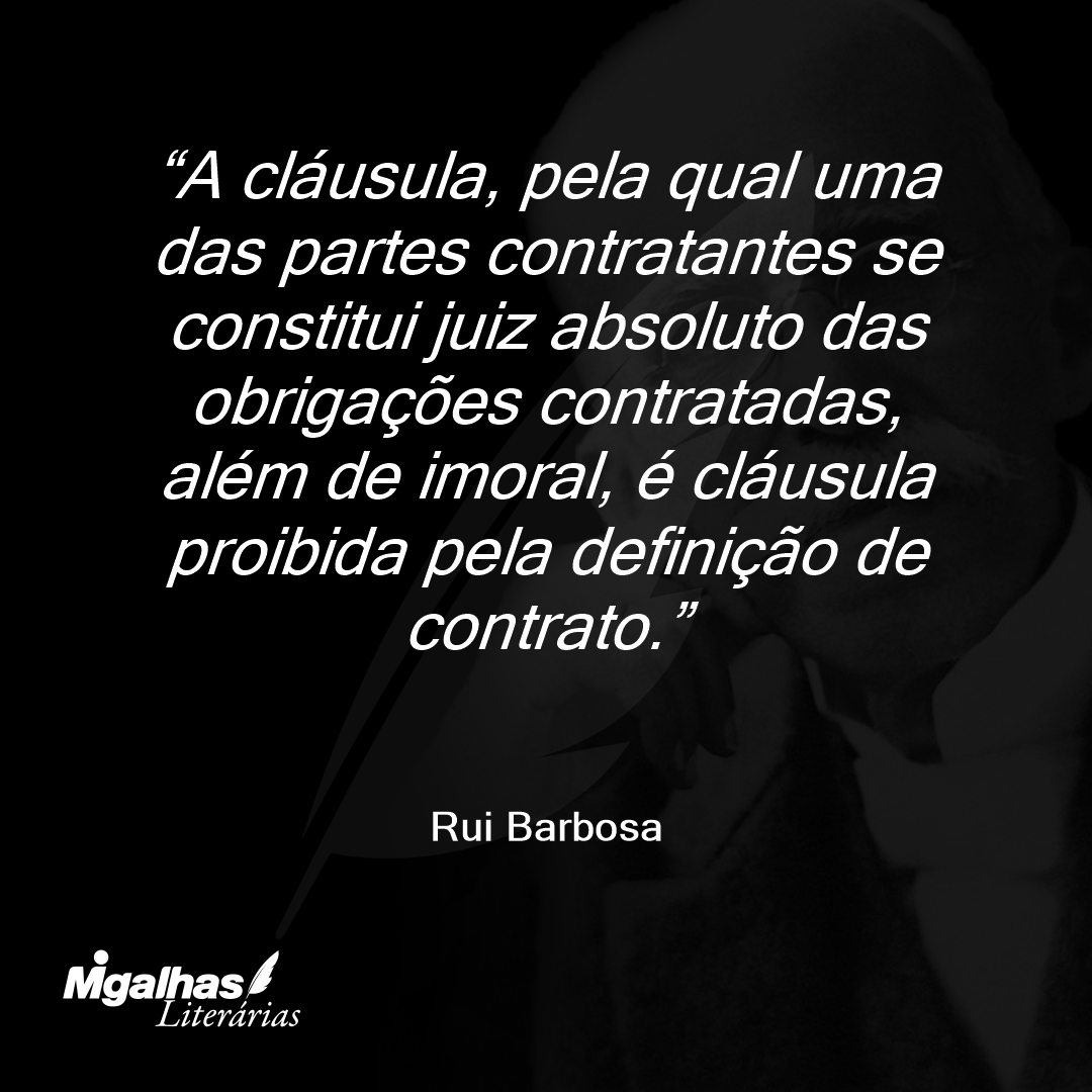 A cláusula, pela qual uma das partes contratantes se constitui juiz absoluto das obrigações contratadas, além de imoral, é cláusula proibida pela definição de contrato.