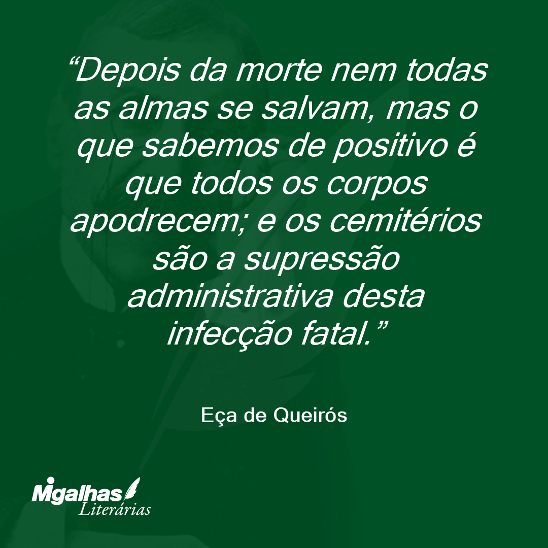 Depois da morte nem todas as almas se salvam, mas o que sabemos de positivo é que todos os corpos apodrecem; e os cemitérios são a supressão administrativa desta infecção fatal.