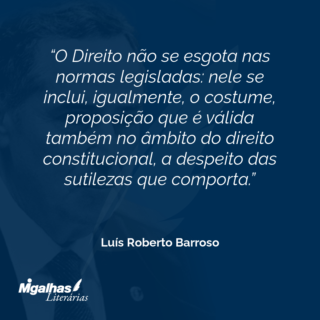 O Direito não se esgota nas normas legisladas: nele se inclui, igualmente, o costume, proposição que é válida também no âmbito do direito constitucional, a despeito das sutilezas que comporta.