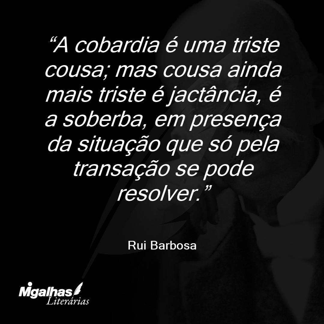A cobardia é uma triste cousa; mas cousa ainda mais triste é jactância, é a soberba, em presença da situação que só pela transação se pode resolver.