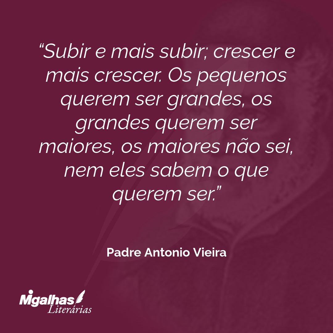 Subir e mais subir; crescer e mais crescer. Os pequenos querem ser grandes, os grandes querem ser maiores, os maiores não sei, nem eles sabem o que querem ser.