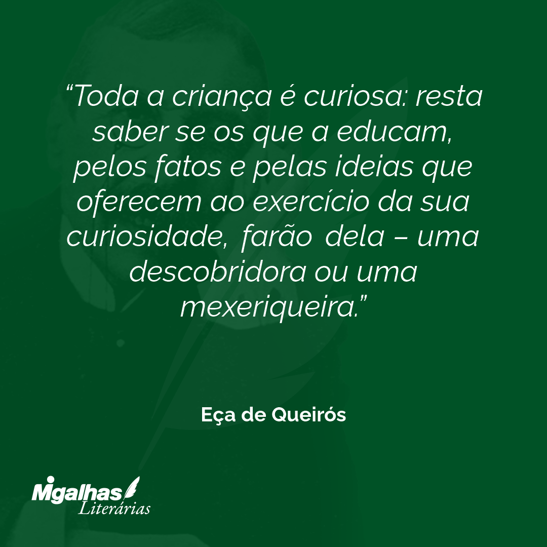 Toda a criança é curiosa: resta saber se os que a educam, pelos fatos e pelas ideias que oferecem ao exercício da sua curiosidade, farão dela – uma descobridora ou uma mexeriqueira.