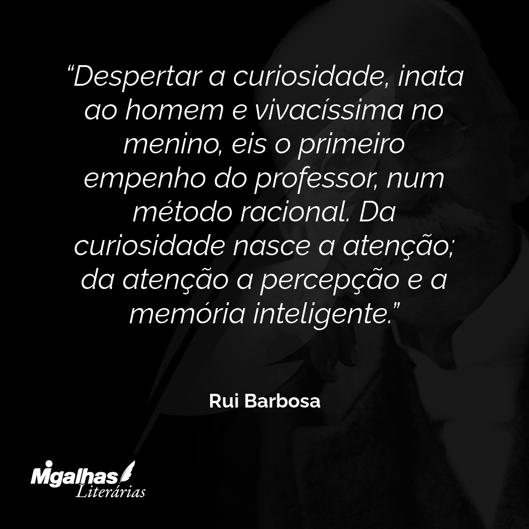 Despertar a curiosidade, inata ao homem e vivacíssima no menino, eis o primeiro empenho do professor, num método racional. Da curiosidade nasce a atenção; da atenção a percepção e a memória inteligente.