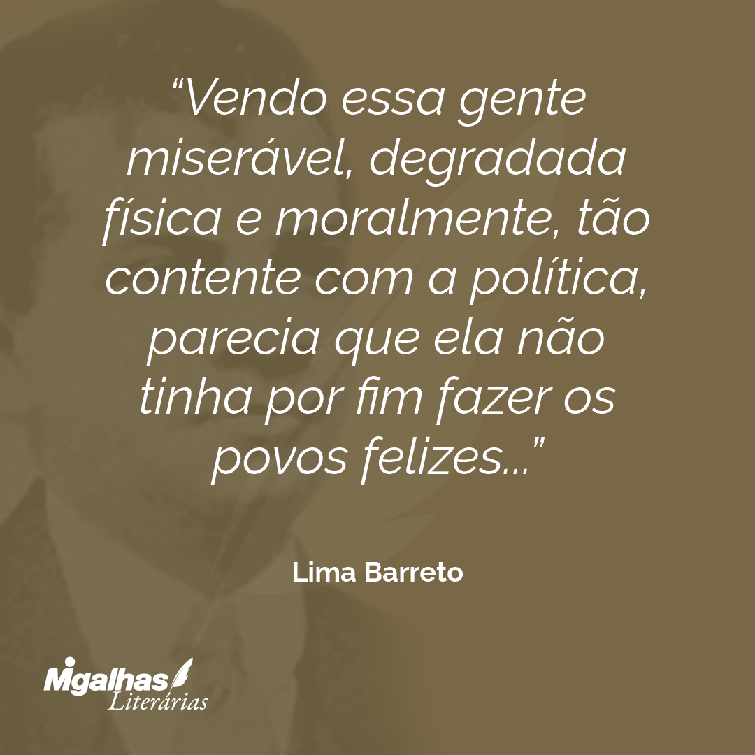Vendo essa gente miserável, degradada física e moralmente, tão contente com a política, parecia que ela não tinha por fim fazer os povos felizes...