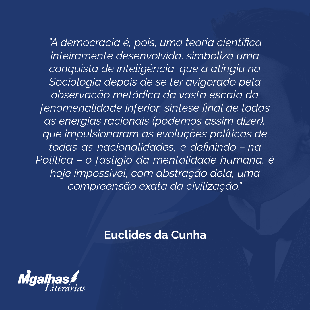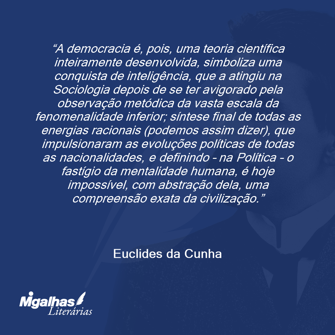 A democracia é, pois, uma teoria científica inteiramente desenvolvida, simboliza uma conquista de inteligência, que a atingiu na Sociologia depois de se ter avigorado pela observação metódica da vasta escala da fenomenalidade inferior; síntese final de todas as energias racionais (podemos assim dizer), que impulsionaram as evoluções políticas de todas as nacionalidades, e definindo – na Política – o fastígio da mentalidade humana, é hoje impossível, com abstração dela, uma compreensão exata da civilização.