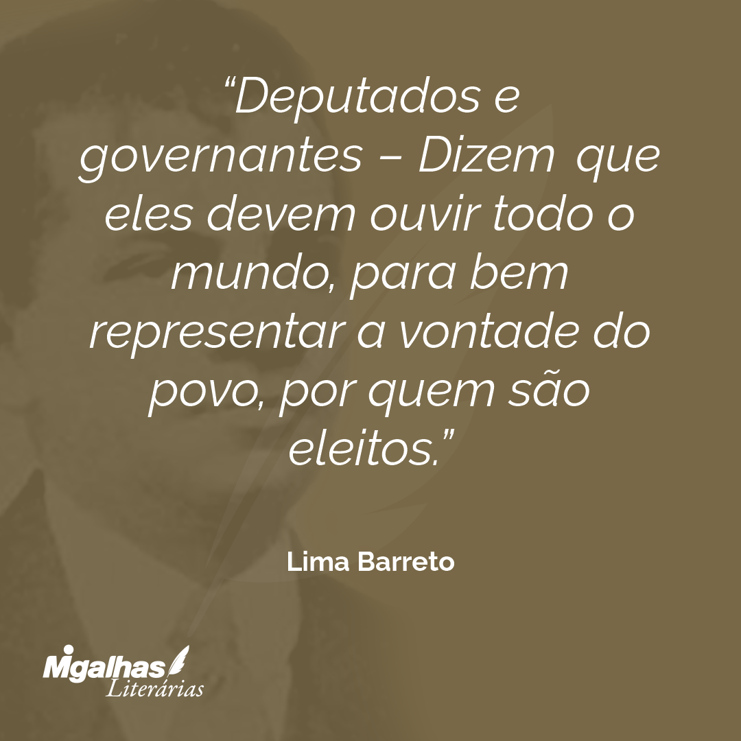 Deputados e governantes – Dizem que eles devem ouvir todo o mundo, para bem representar a vontade do povo, por quem são eleitos.