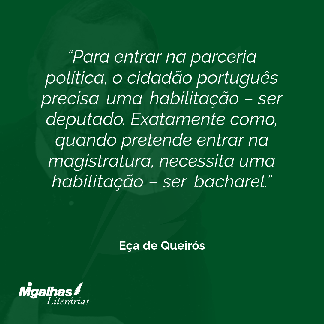Para entrar na parceria política, o cidadão português precisa uma habilitação – ser deputado. Exatamente como, quando pretende entrar na magistratura, necessita uma habilitação – ser bacharel.