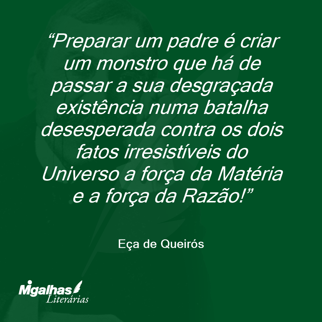 Preparar um padre é criar um monstro que há de passar a sua desgraçada existência numa batalha desesperada contra os dois fatos irresistíveis do Universo a força da Matéria e a força da Razão!