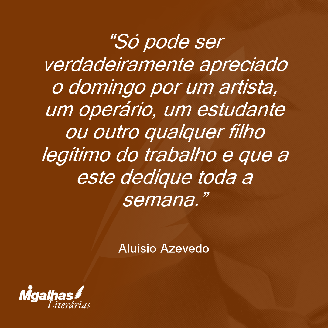 Só pode ser verdadeiramente apreciado o domingo por um artista, um operário, um estudante ou outro qualquer filho legítimo do trabalho e que a este dedique toda a semana.