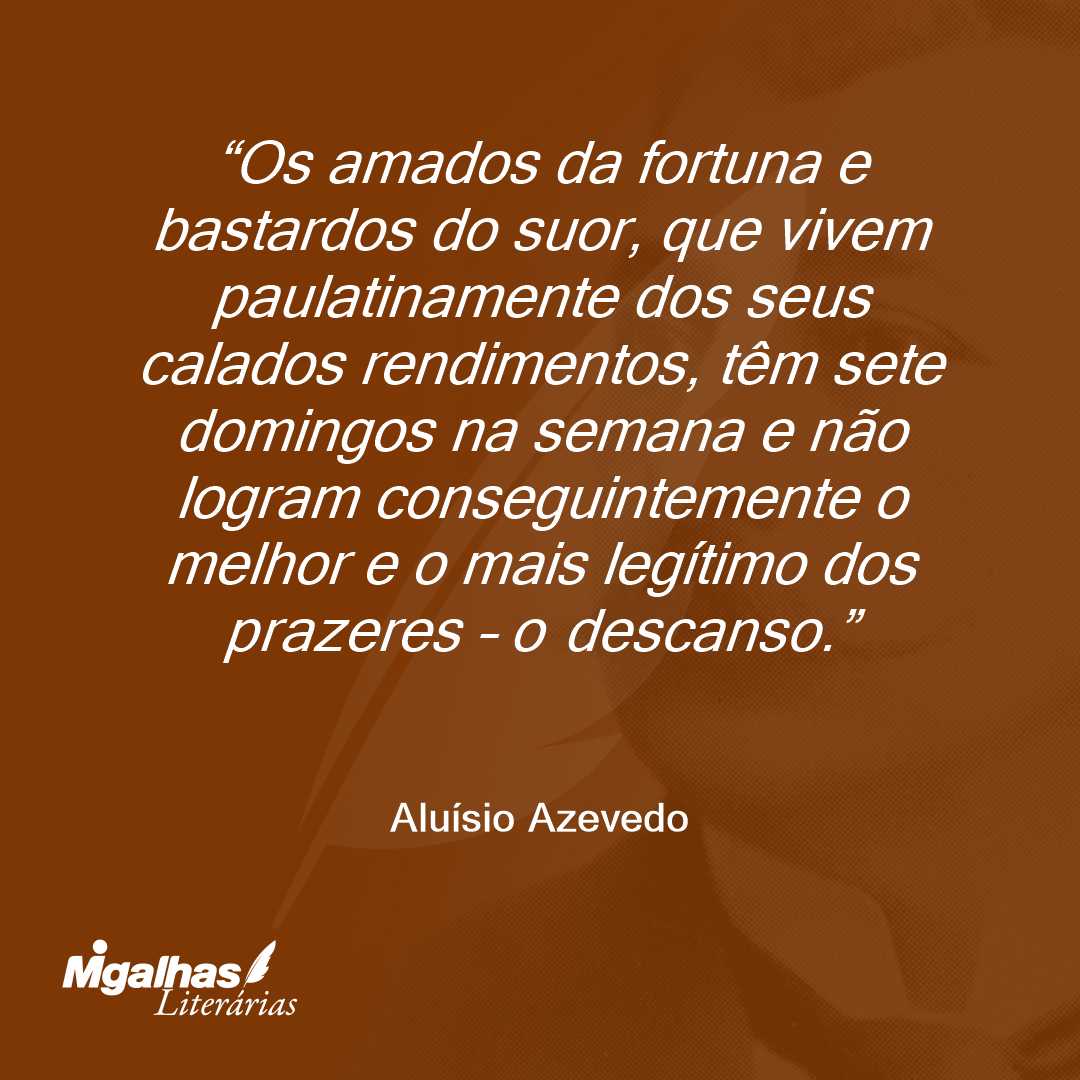 Os amados da fortuna e bastardos do suor, que vivem paulatinamente dos seus calados rendimentos, têm sete domingos na semana e não logram conseguintemente o melhor e o mais legítimo dos prazeres – o descanso.