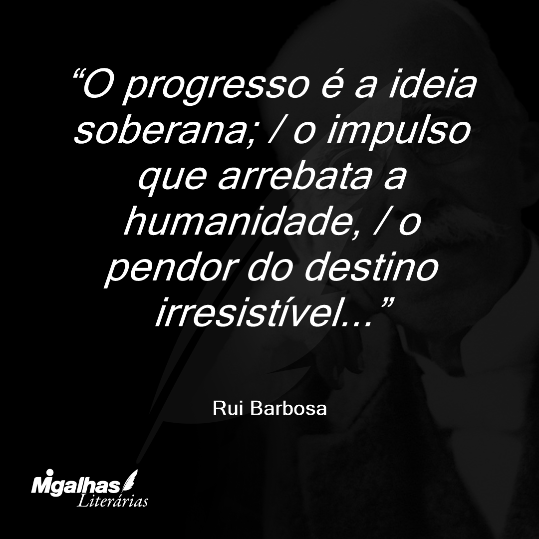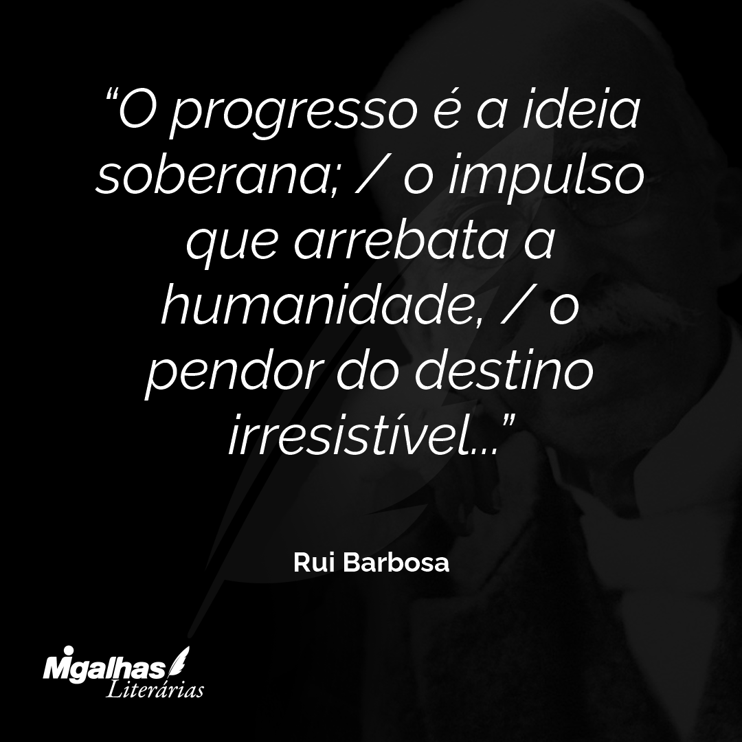 O progresso é a ideia soberana; / o impulso que arrebata a humanidade, / o pendor do destino irresistível...