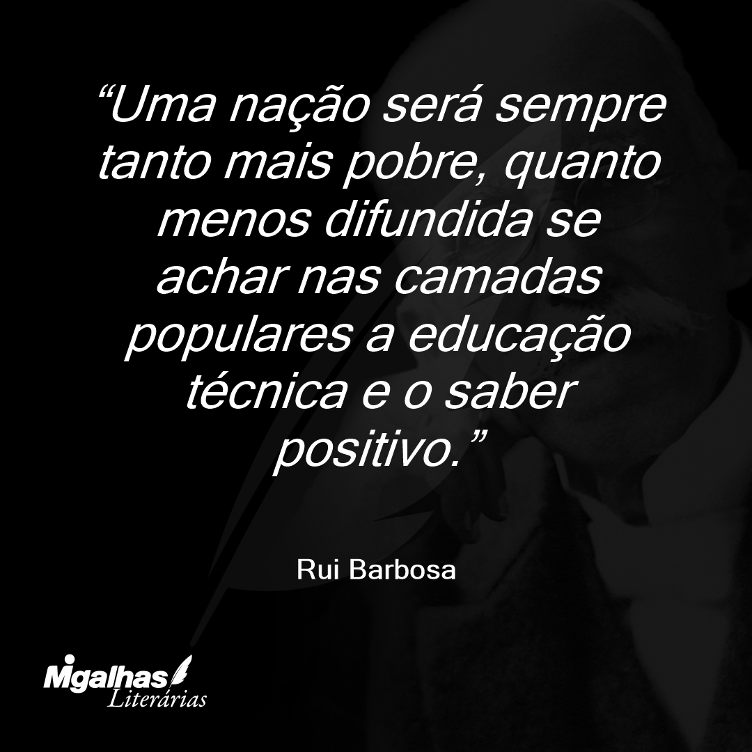 Uma nação será sempre tanto mais pobre, quanto menos difundida se achar nas camadas populares a educação técnica e o saber positivo.