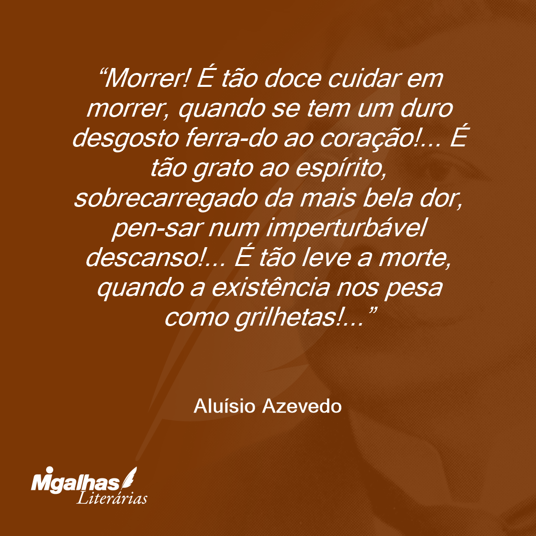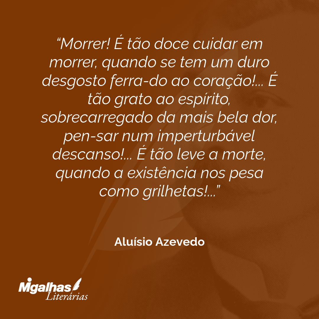 Morrer! É tão doce cuidar em morrer, quando se tem um duro desgosto ferra-do ao coração!... É tão grato ao espírito, sobrecarregado da mais bela dor, pen-sar num imperturbável descanso!... É tão leve a morte, quando a existência nos pesa como grilhetas!...