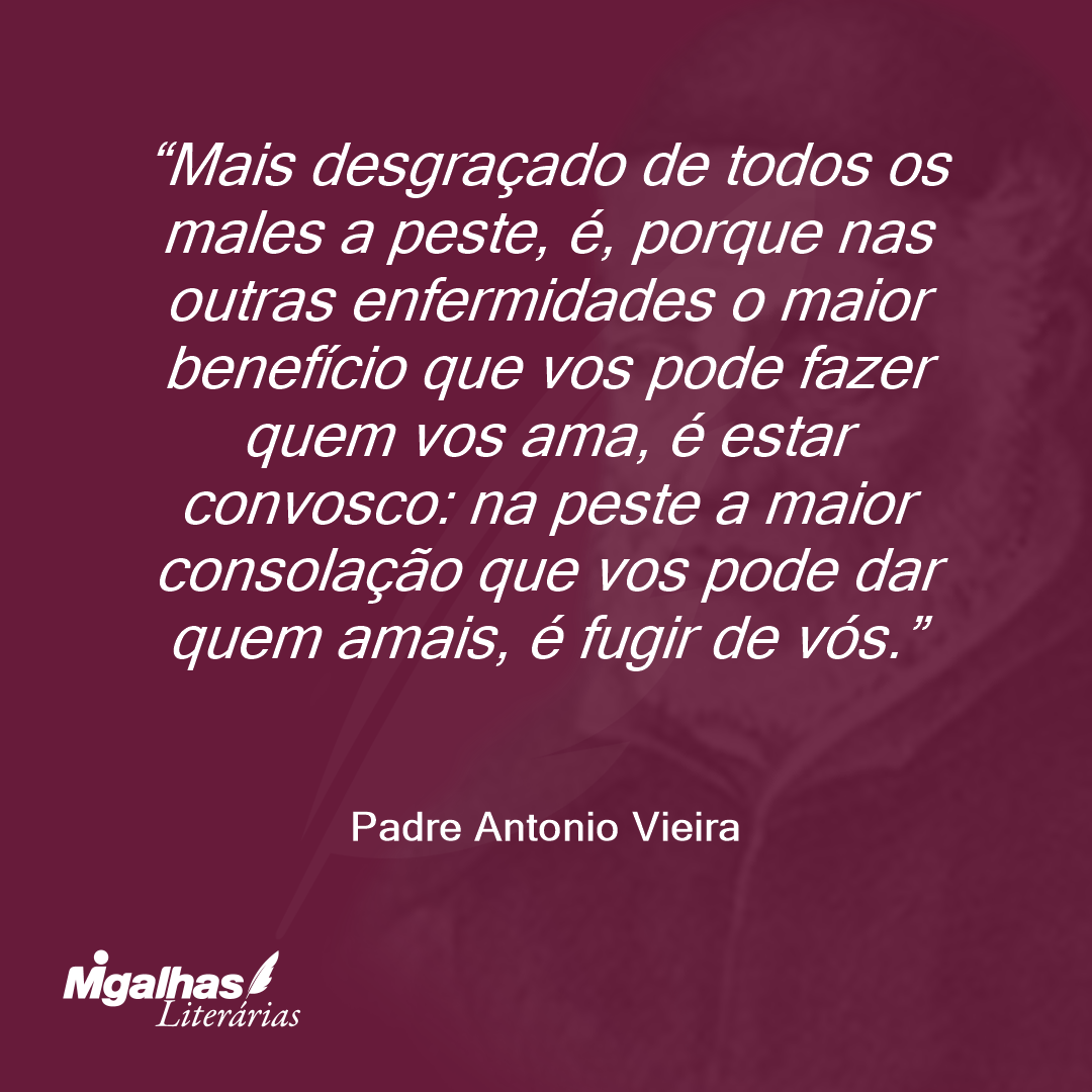Mais desgraçado de todos os males a peste, é, porque nas outras enfermidades o maior benefício que vos pode fazer quem vos ama, é estar convosco: na peste a maior consolação que vos pode dar quem amais, é fugir de vós.