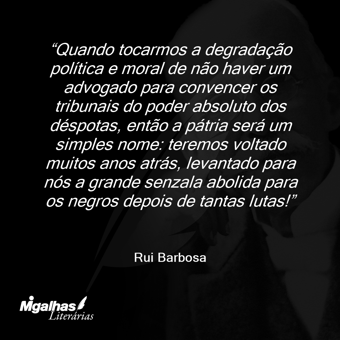 Quando tocarmos a degradação política e moral de não haver um advogado para convencer os tribunais do poder absoluto dos déspotas, então a pátria será um simples nome: teremos voltado muitos anos atrás, levantado para nós a grande senzala abolida para os negros depois de tantas lutas!
