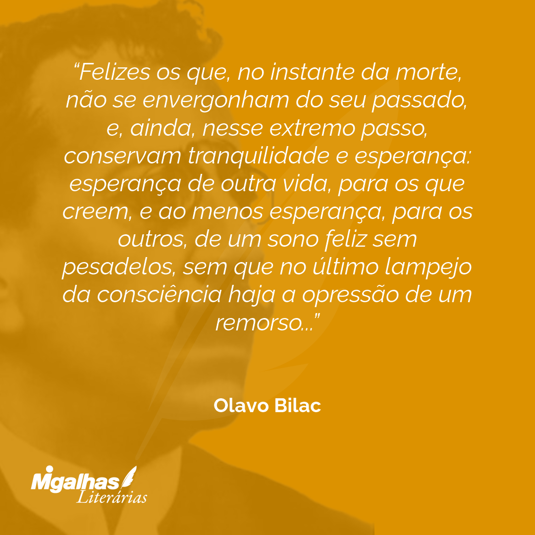 Felizes os que, no instante da morte, não se envergonham do seu passado, e, ainda, nesse extremo passo, conservam tranquilidade e esperança: esperança de outra vida, para os que creem, e ao menos esperança, para os outros, de um sono feliz sem pesadelos, sem que no último lampejo da consciência haja a opressão de um remorso...