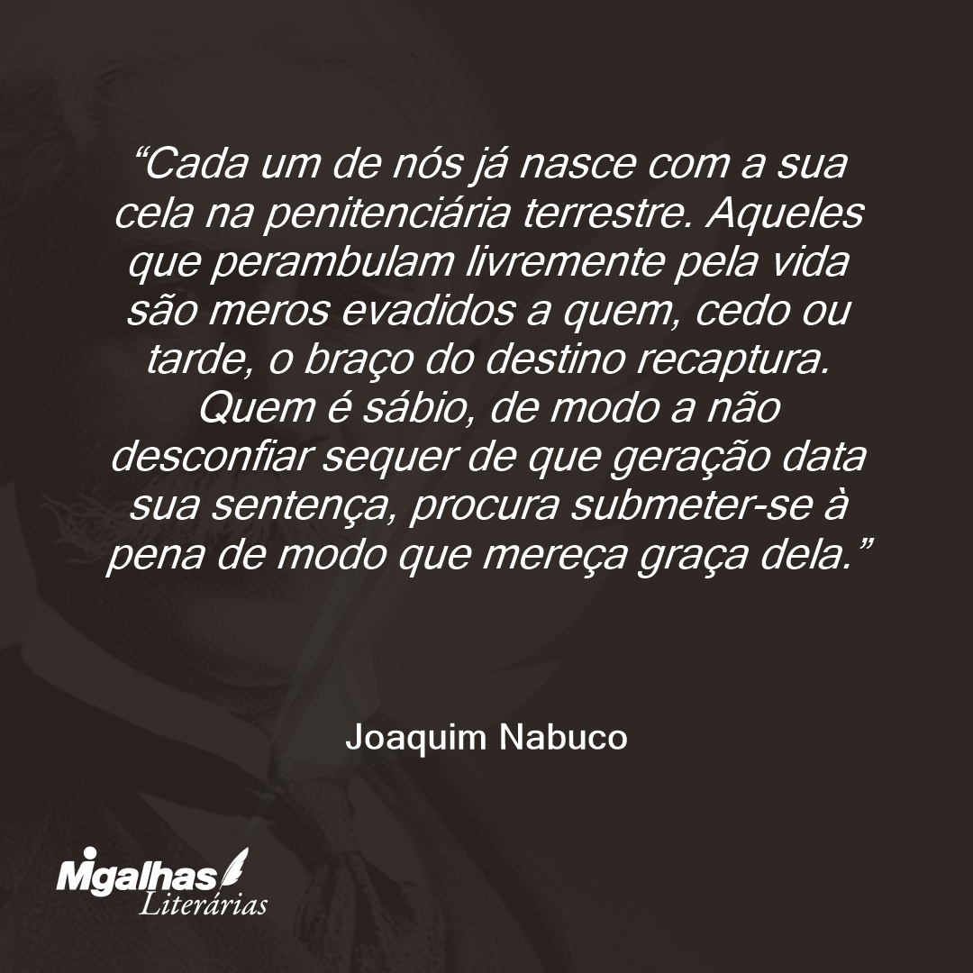 Cada um de nós já nasce com a sua cela na penitenciária terrestre. Aqueles que perambulam livremente pela vida são meros evadidos a quem, cedo ou tarde, o braço do destino recaptura. Quem é sábio, de modo a não desconfiar sequer de que geração data sua sentença, procura submeter-se à pena de modo que mereça graça dela.