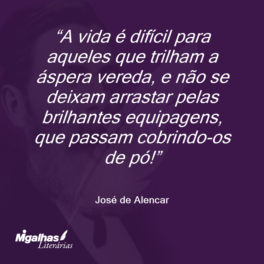 A vida é difícil para aqueles que trilham a áspera vereda, e não se deixam arrastar pelas brilhantes equipagens, que passam cobrindo-os de pó!