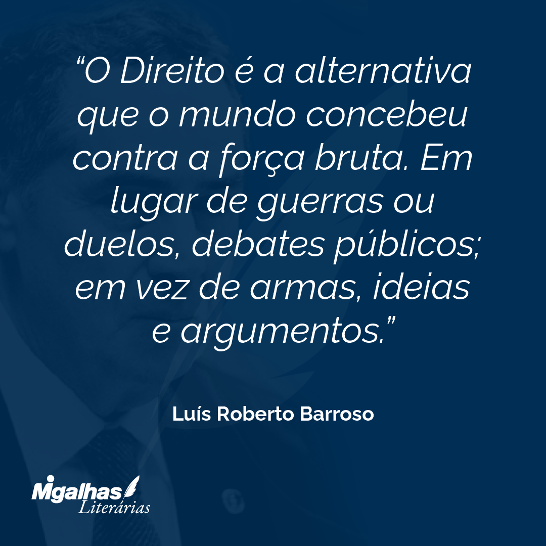 O Direito é a alternativa que o mundo concebeu contra a força bruta. Em lugar de guerras ou duelos, debates públicos; em vez de armas, ideias e argumentos.