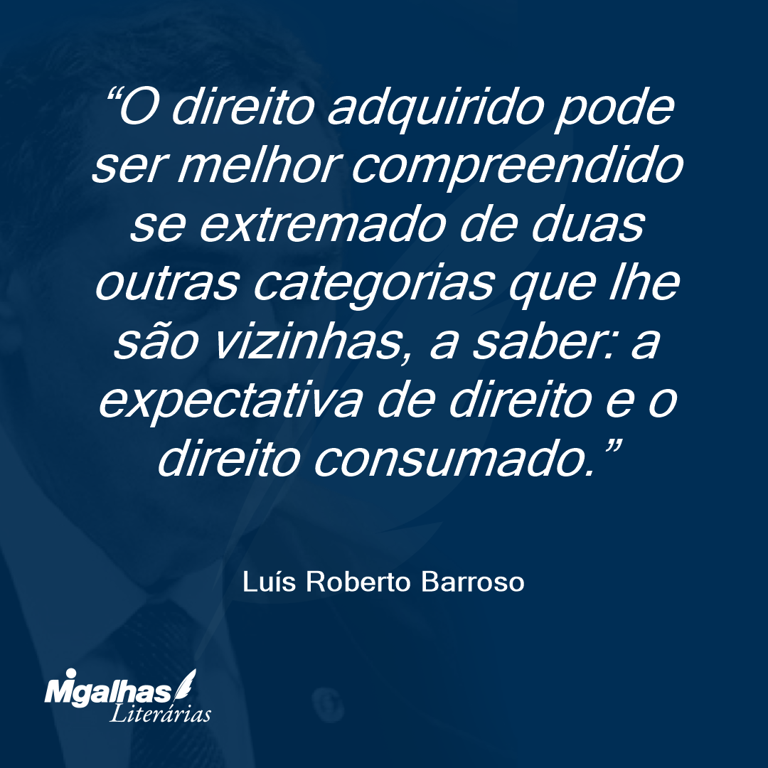 O direito adquirido pode ser melhor compreendido se extremado de duas outras categorias que lhe são vizinhas, a saber: a expectativa de direito e o direito consumado.