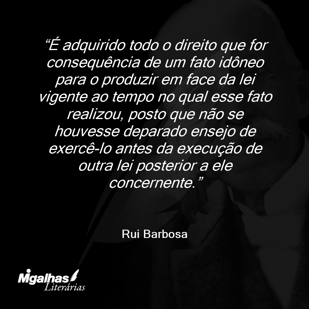 É adquirido todo o direito que for consequência de um fato idôneo para o produzir em face da lei vigente ao tempo no qual esse fato realizou, posto que não se houvesse deparado ensejo de exercê-lo antes da execução de outra lei posterior a ele concernente.