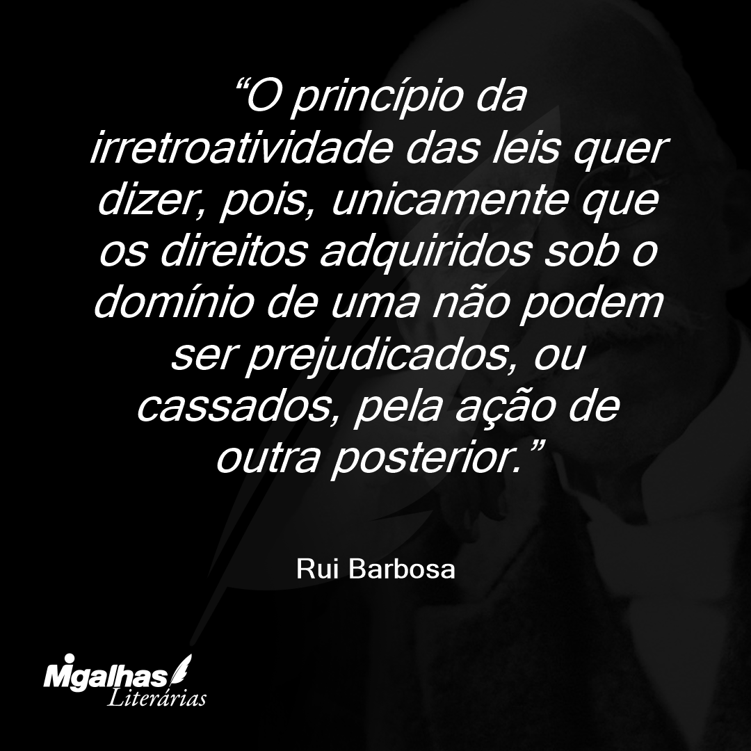 O princípio da irretroatividade das leis quer dizer, pois, unicamente que os direitos adquiridos sob o domínio de uma não podem ser prejudicados, ou cassados, pela ação de outra posterior.