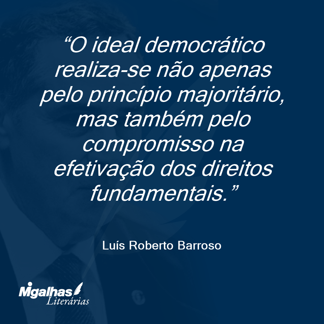 A Constituição deve desempenhar dois grandes papéis. Um deles é o de estabelecer as regras do jogo democrático, assegurando a participação política ampla, o governo da maioria e a alternância no poder. Mas a democracia não se resume ao princípio majoritário. Se houver oito católicos e dois muçulmanos em uma sala, não poderá o primeiro grupo deliberar jogar o segundo pela janela, pelo simples fato de estar em maior número. Aí está o segundo grande papel de uma Constituição: proteger valores e direitos fundamentais, mesmo que contra a vontade circunstancial de quem tem mais votos.