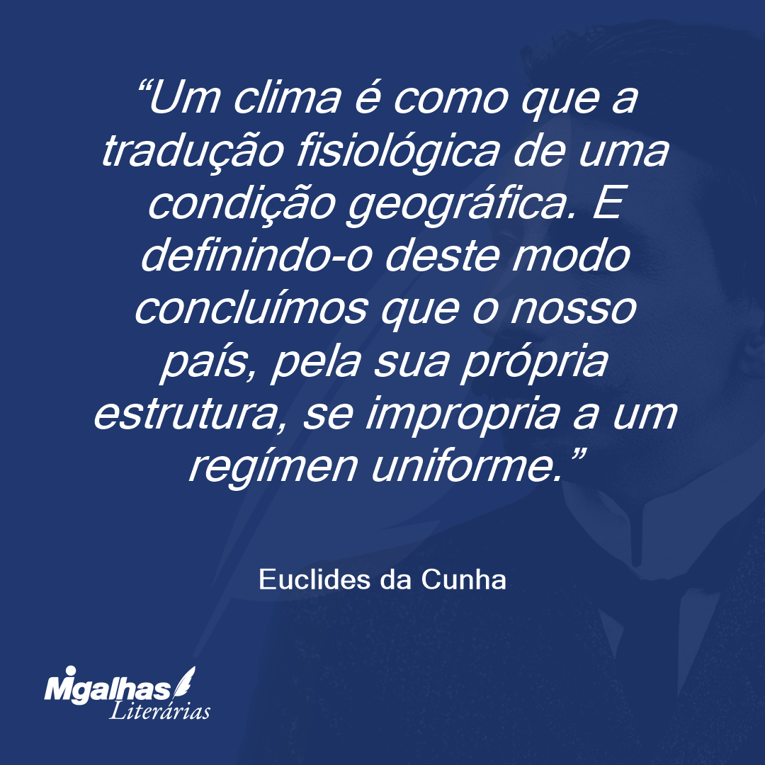 Um clima é como que a tradução fisiológica de uma condição geográfica. E definindo-o deste modo concluímos que o nosso país, pela sua própria estrutura, se impropria a um regímen uniforme.